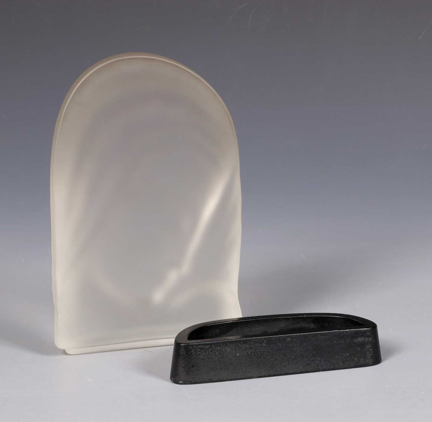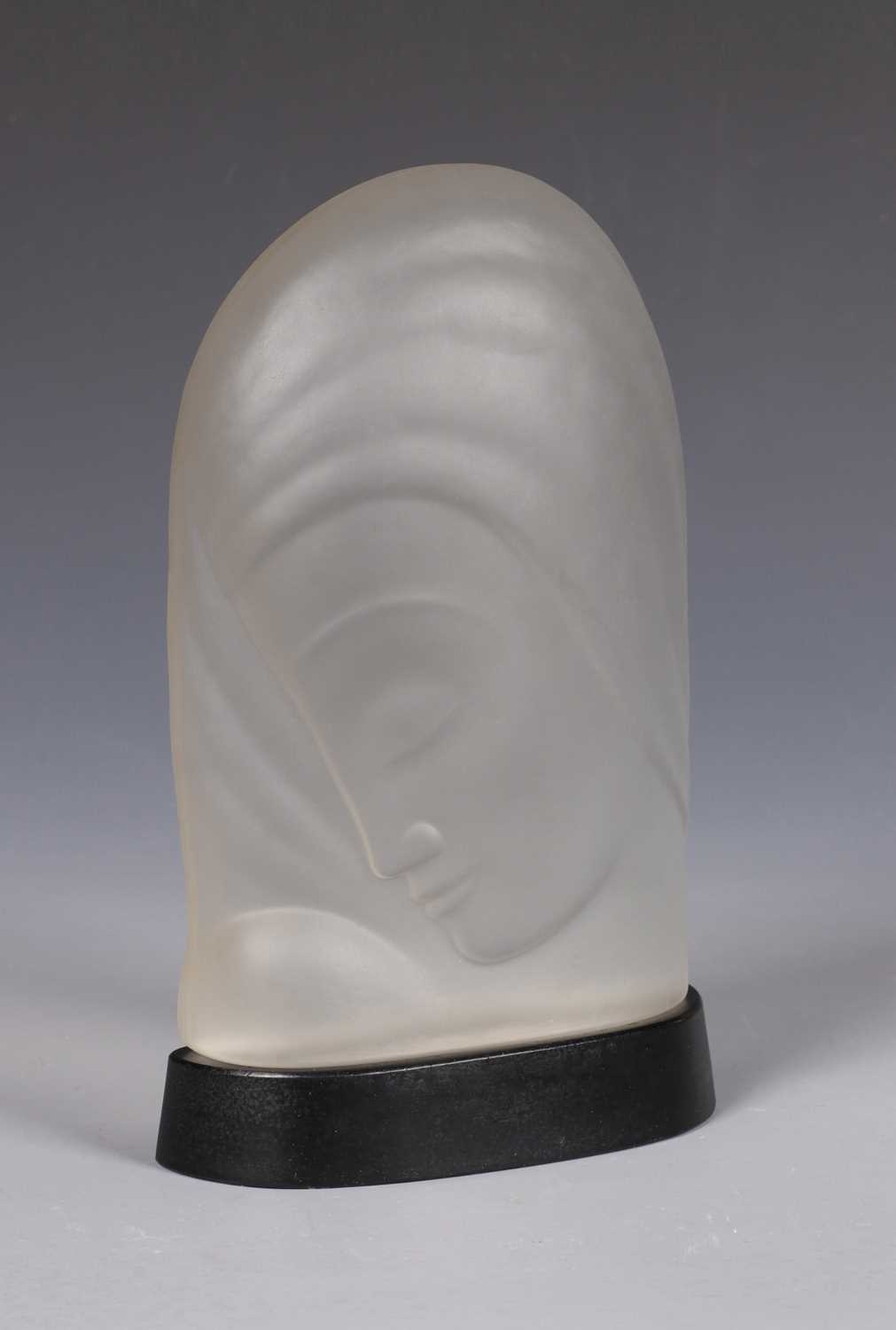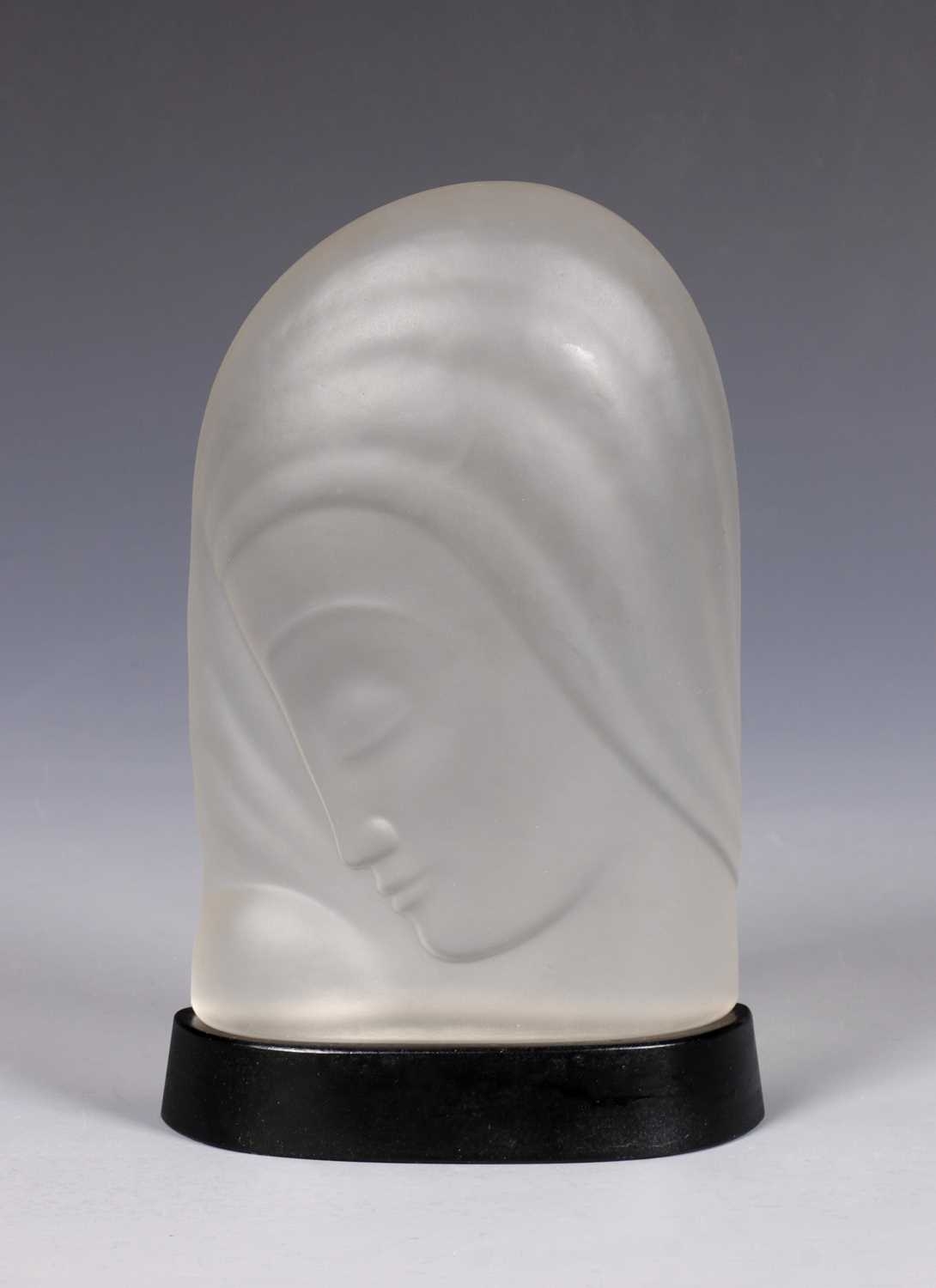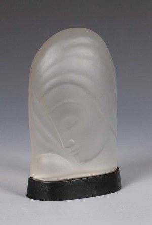 Persglazen Madonna op persglazen ondervoet, ontwerp en uitvoering Jules Vermeire voor Glasfabriek Leerdam ca. 1932.
