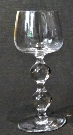 Zwaar kristallen wijnglas met 2 bollen uit de A.D. Copier collectie 1961 en passende bij de karaf. Hoogte 19,5 cm.