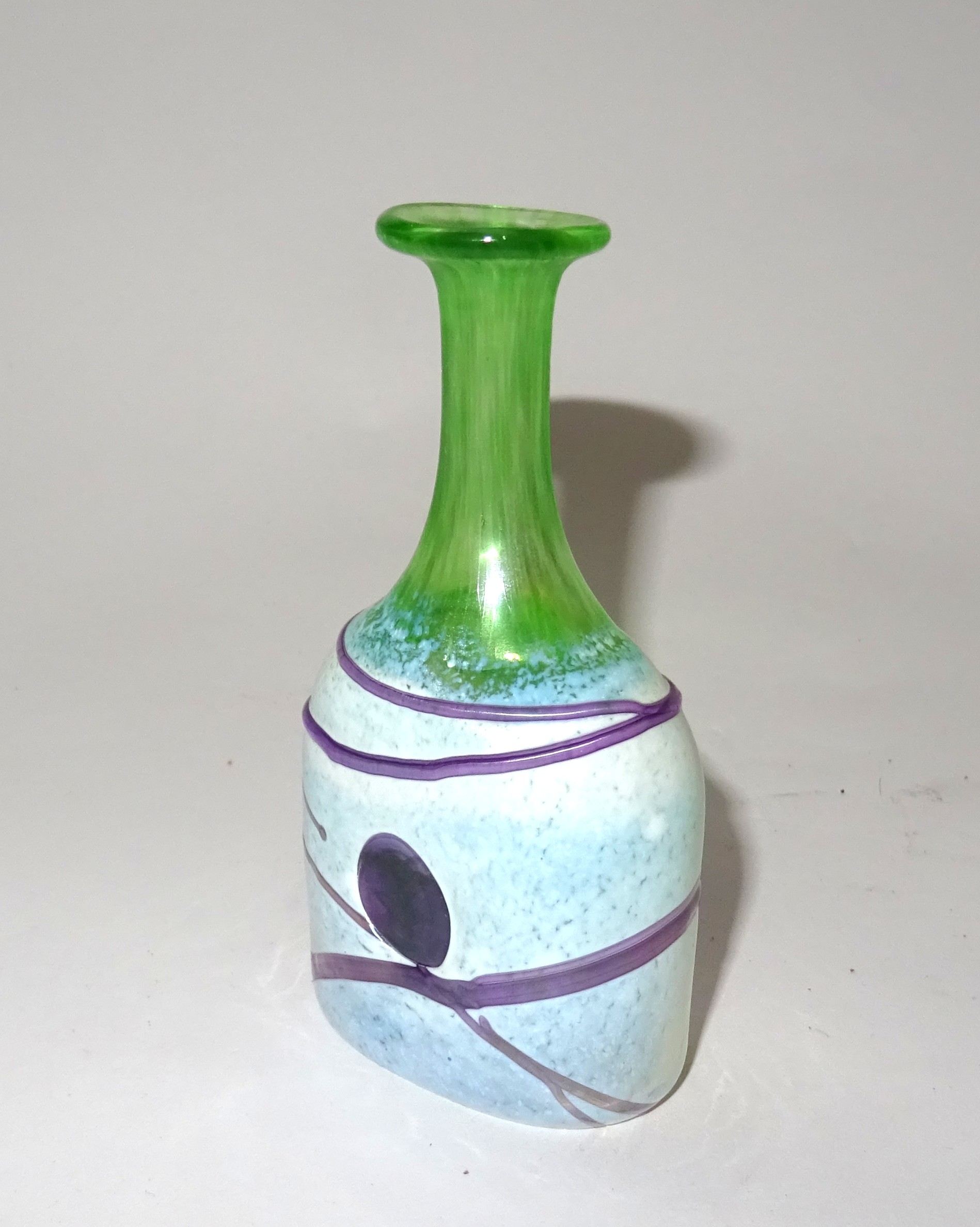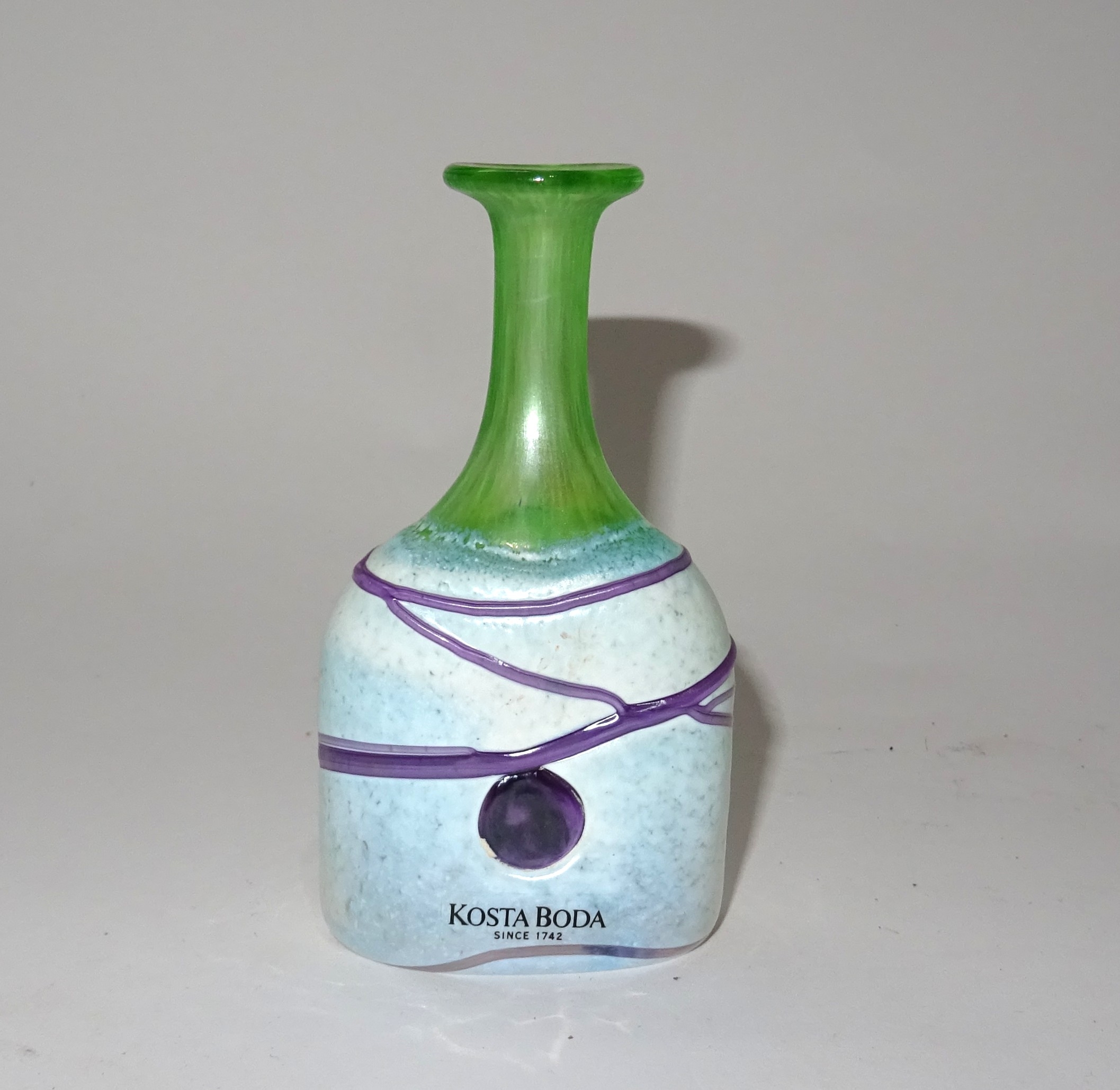 Een miniatuur Galaxy vaasje, ontwerp Bertil Vallien voor Kosta Boda. Hoogte 95 mm. Gesigneerd.