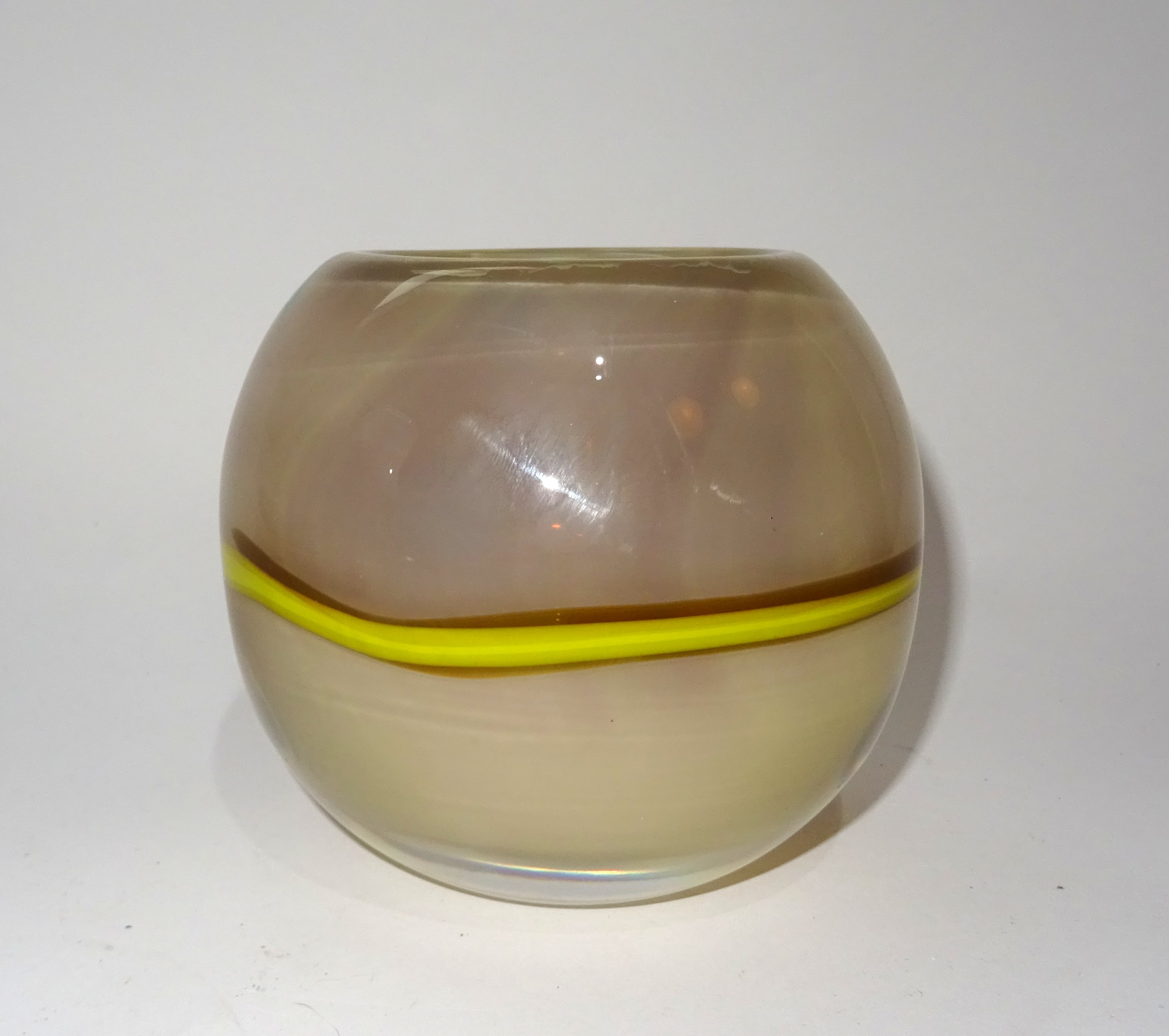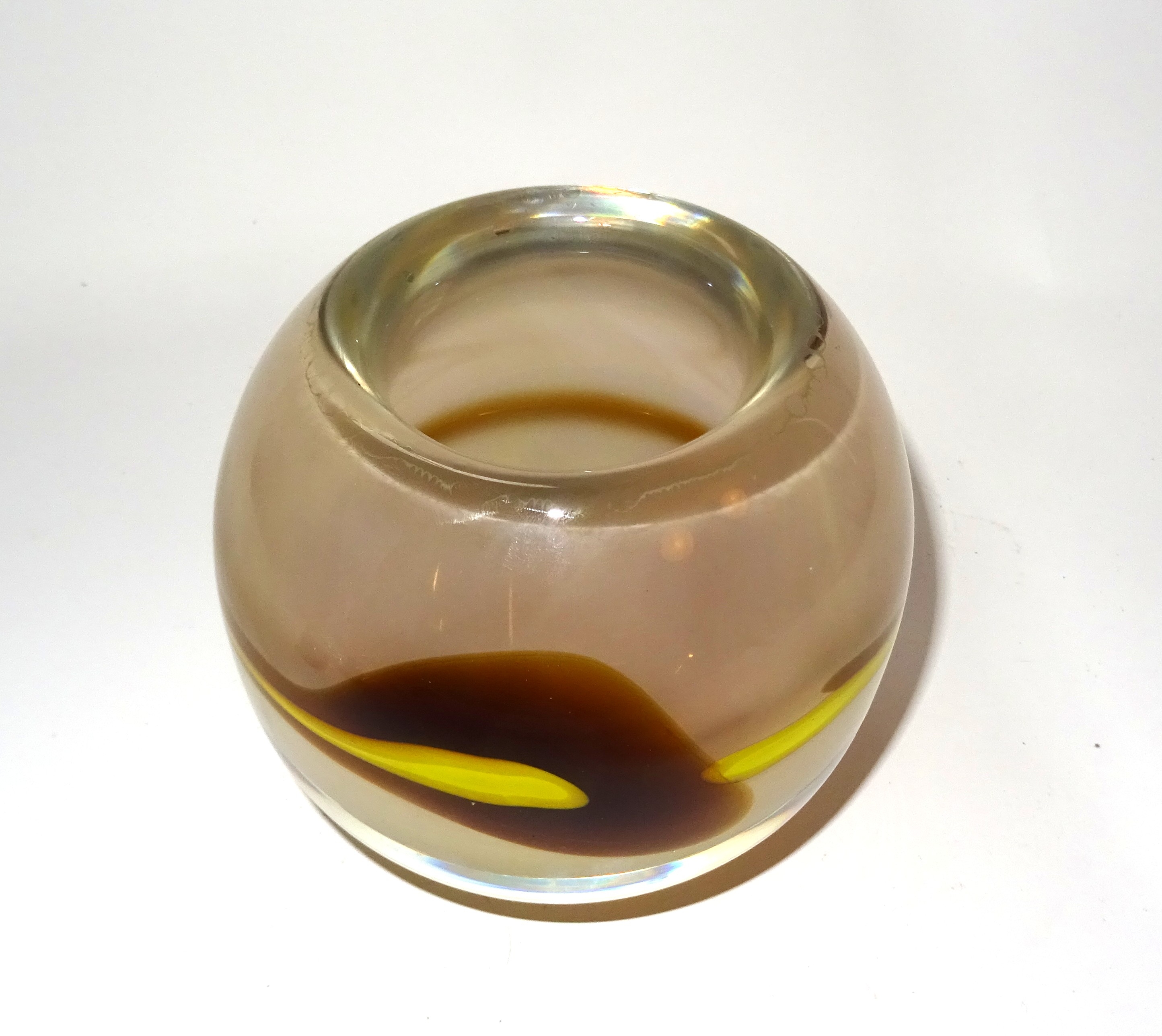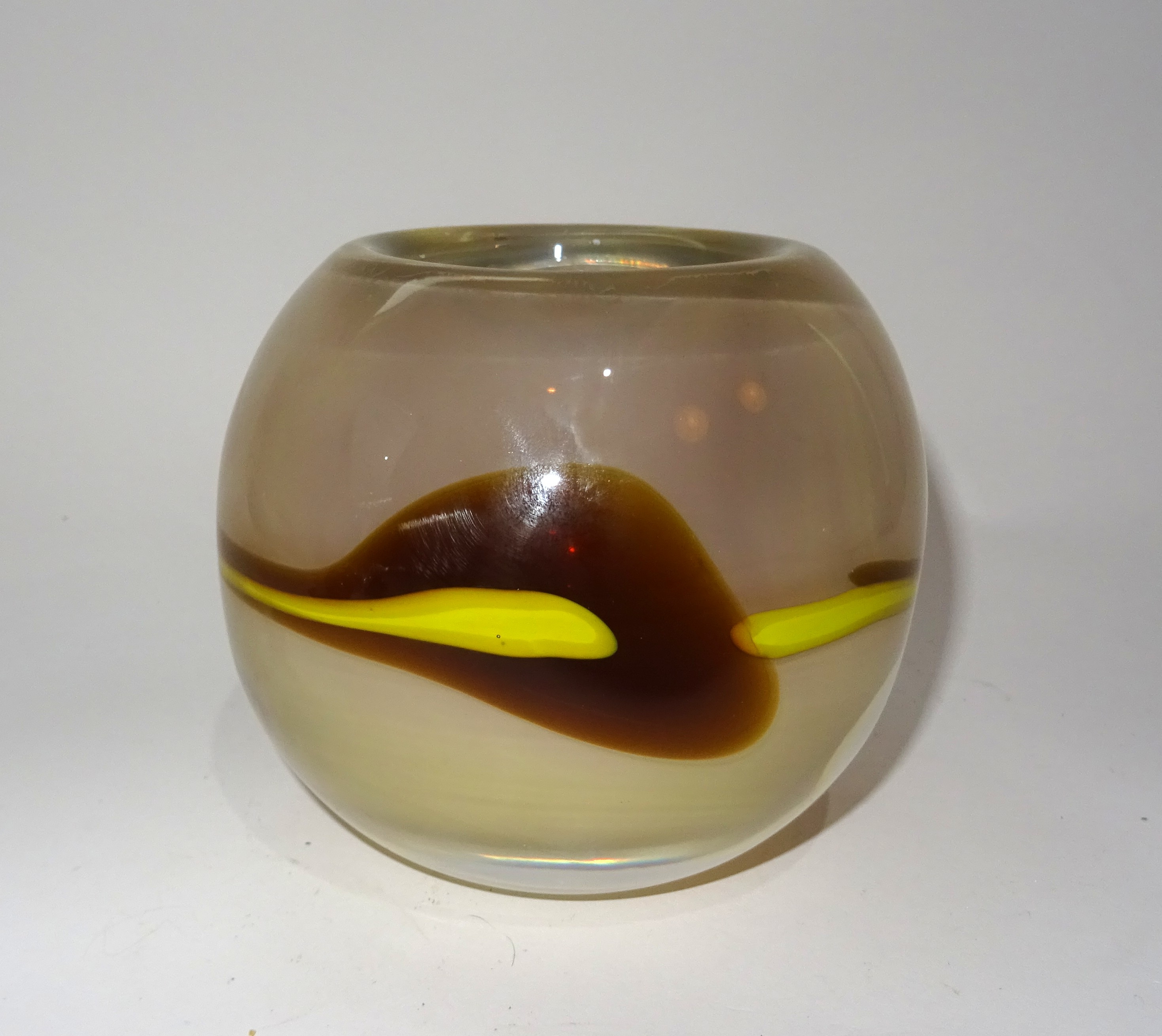 Dikwandig unica bolvaasje, ontwerp Floris Meydam, uitvoering Royal Leerdam 1980. Hoogte 11 cm, doorsnede 12 cm. Gesigneerd.