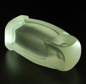 Persglazen en gesatineerde uil, ontwerp Hein M. Laupman voor Glasfabriek Leerdam 1953. Hoogte 15 cm, Mooie conditie, lichte gebruikssporen en wat luchtbelletjes.