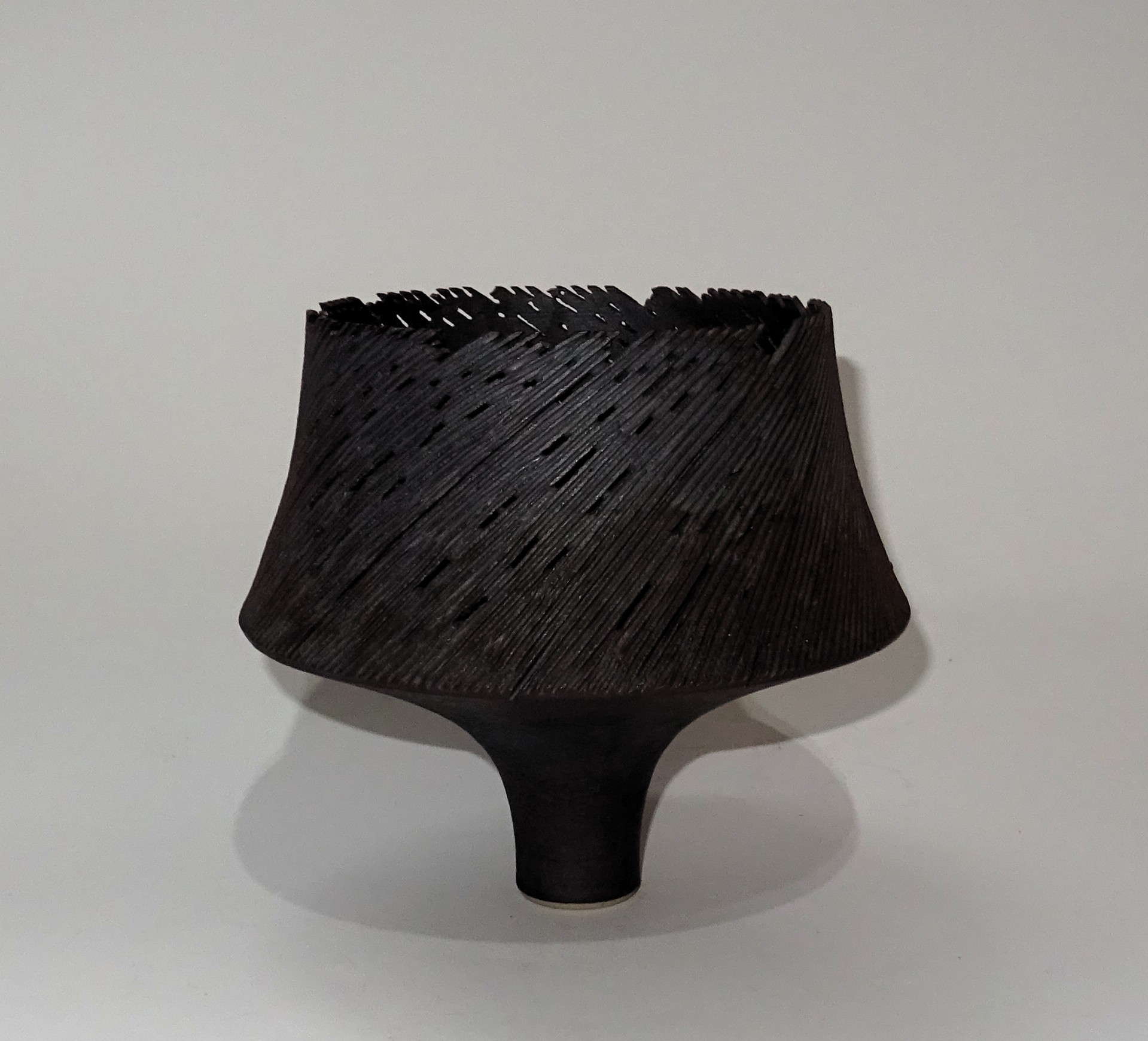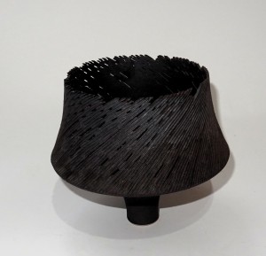 Een porseleinen kom met opengewerkt motief, ontwerp en uitvoering Horst Göbbels in eigen atelier. Hoogte 14 cm, doorsnede 15 cm.