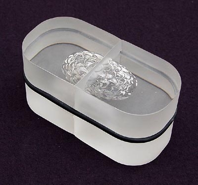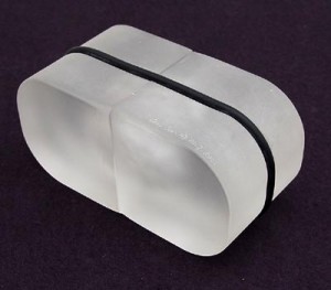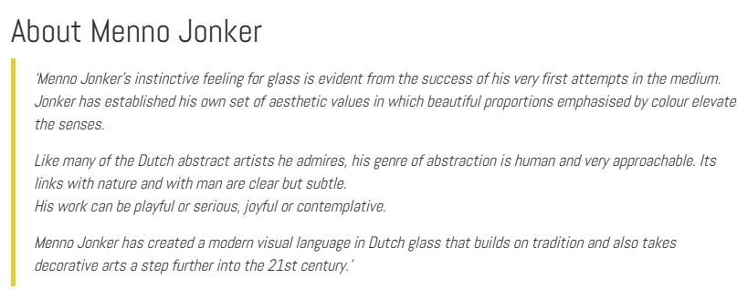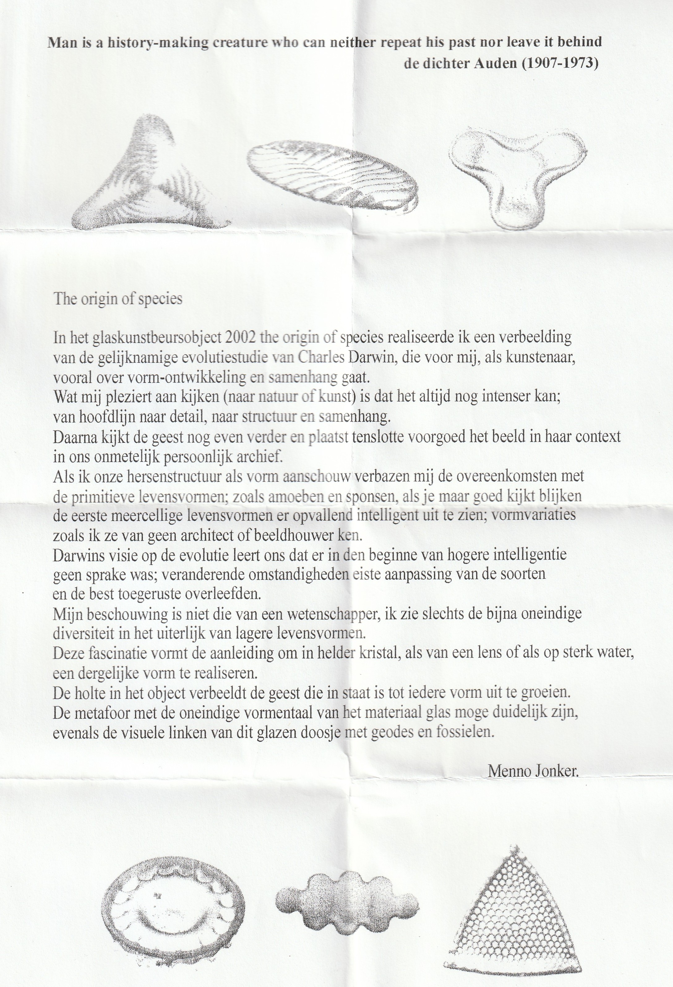 Glasunstbeurs jaarobject getiteld The Origin of Species. Ontwerp Menno Jonker, uitvoering Royal Leerdam. Gesigneerd en genummerd, met originele verpakking en certificaat. Lengte 14 cm.