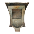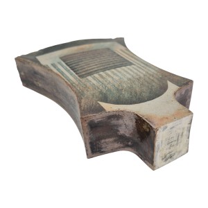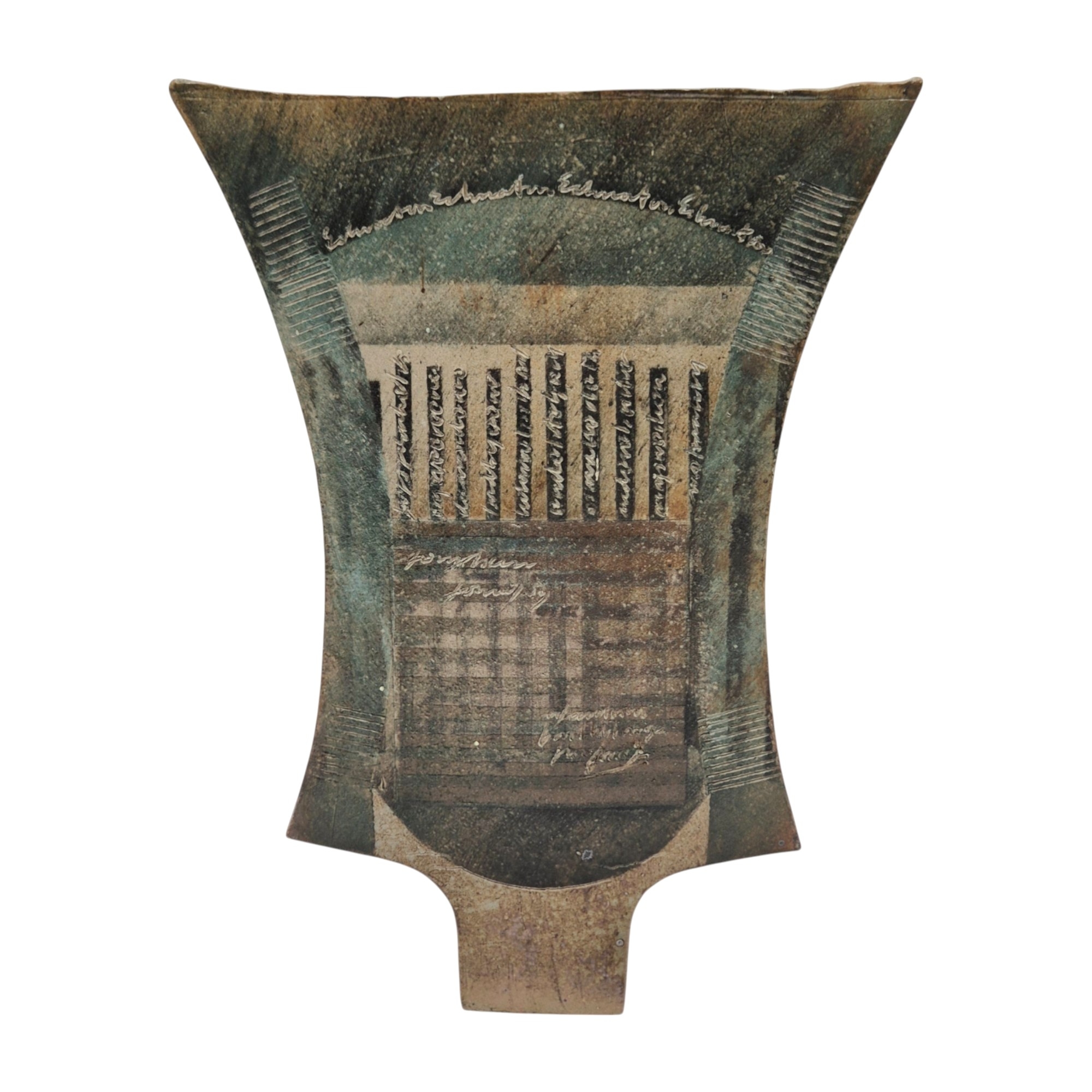 Aardewerk vaas met geschreven tekst, ontwerp en uitvoering Netty Janssens in eigen atelier. Afmeting 26,5 x 20 x 7 cm.