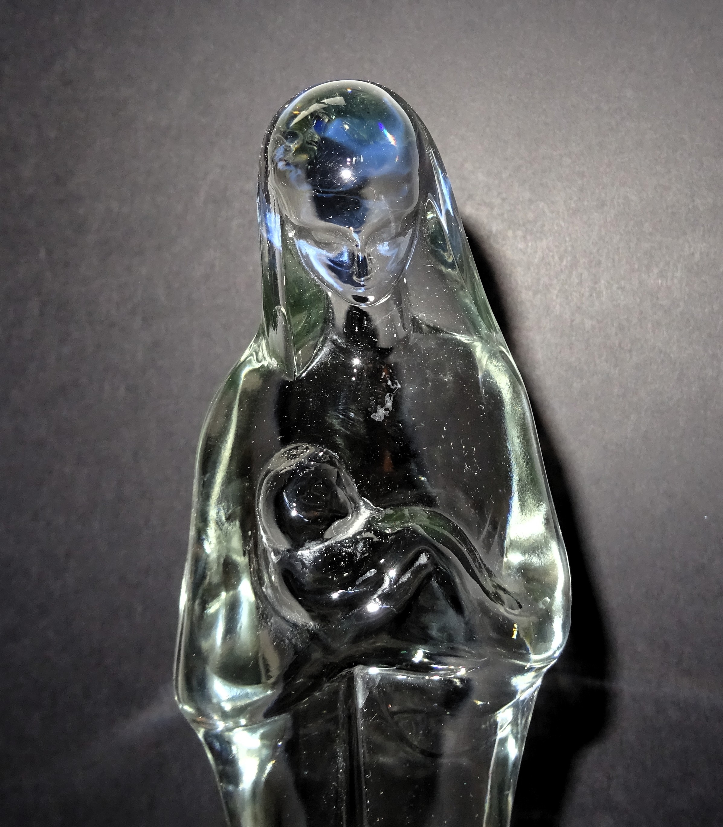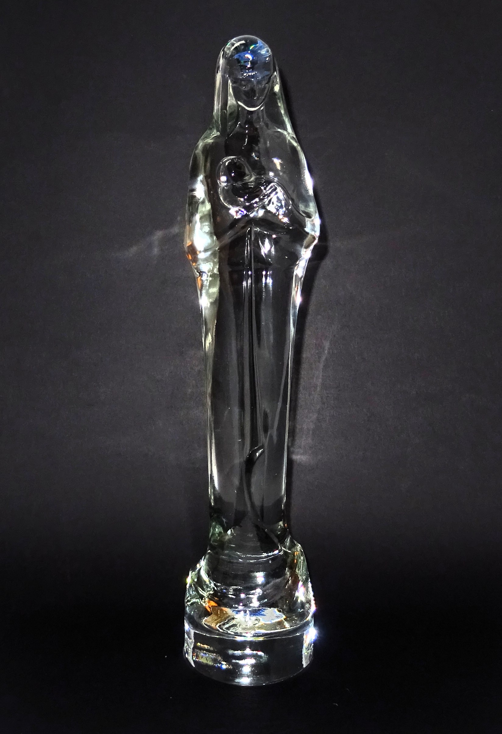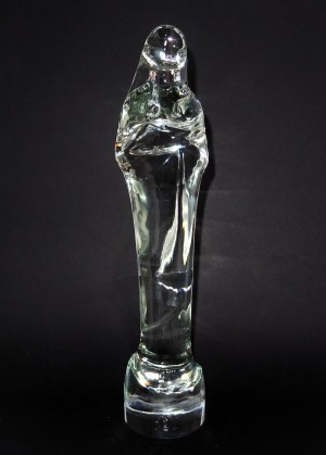 Madonna met kind, blanke uitvoering, ontwerp Stef Uiterwaal voor Glasfabriek Leerdam 1929. Hoogte 37 cm.