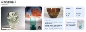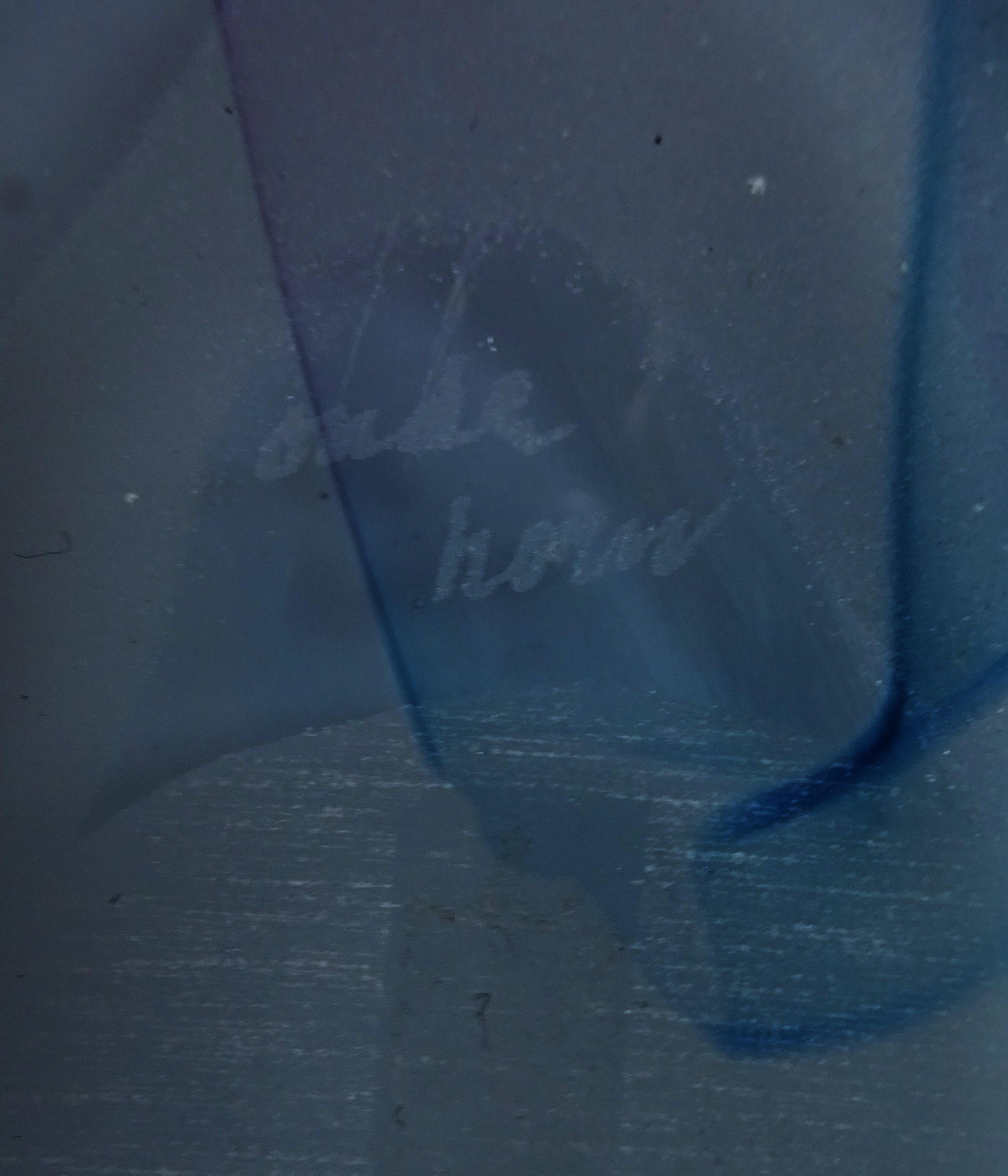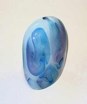 Blauw met licht roze unica, ontwerp en uitvoering Willem Heesen in eigen atelier te Acquoy. Hoogte 26,5 cm. Gesigneerd.